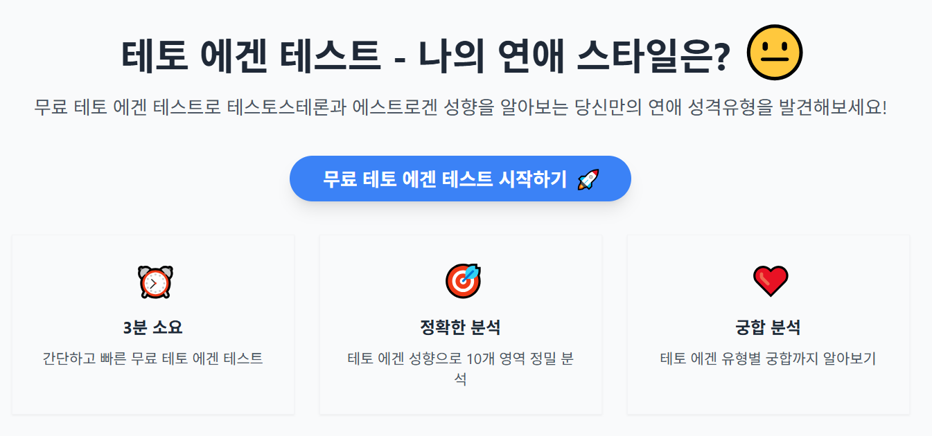 혹시 자신의 연애 스타일이 궁금하거나, 썸 혹은 연애 중인 상대방과의 관계를 더 깊이 이해하고 싶다면 지금 바로 '테토-에겐 테스트'에 참여해 보세요.